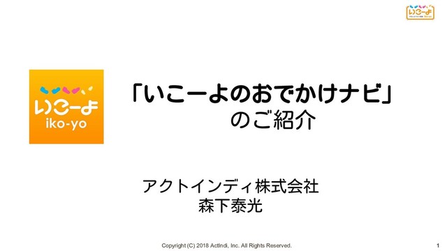 Copyright (C) 2018 ActIndi, Inc. All Rights Reserved. 1 「いこーよのおでかけナビ」
