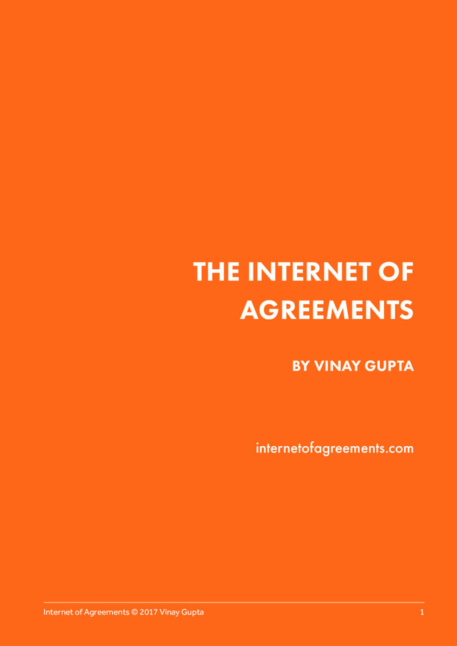 ECONOMY The sharing economy is currently structured in a model that Robin Chase, the founder of ZipCar (a very successful car sharing service) describes in her book “Peers, Inc.” The Peers, Inc model describes Peers who are a network of asset owners with a spare room, a car which isn’t used while they are at work, or similar sleeping assets. The “Inc.” is an incorporated company which joins these assets together into an accessible market. This central clearing house typically charges a substantial fee for this service. In return the company manages software creation costs, legal and regulatory interfaces with government, marketing and advertising for the brand and so on. However, this model makes it quite hard for the Peers to get a square deal from the Inc in the centre. Because the Inc is a company with a few thousand staff, and the Peer is typically an individual with a little sliver of resources to share, in the event of a dispute they are not evenly matched. This pattern replicates between market makers and vendors at all scales. SWIFT and VISA are quite powerful compared to their member banks: being barred from either network would be catastrophic for many financial institutions. Dee Hock, the founder of VISA, tried and failed to build an interbank network before VISA was created because of these commercial dynamics. To get the Peers a square deal in such an environment requires some kind of collective representation or altered ownership model, or regulation from the government. A future can be envisaged in which peers are formed into collective bargaining blocs a little like labor unions, or a future in which peers own the Inc structure which represents them, or a future in which the government regulates sharing economy companies quite strictly to ensure a fair deal for all. Government levels the playing field between powerful institutions and ordinary people in many areas. The sharing economy may continue to throw out the kind of problems which cause governments to pay attention and take action. However, in a business environment in which a forest of small contracts, represented as blockchain smart contracts, is woven together into a reliable mesh of interlocking deals, with support from the government, perhaps the balance shifts towards the Peers. When the cost and complexity of running a sharing economy market for cars, housing or some other resource drops by %90 or %95 because of automated contracting infrastructure on blockchains perhaps the natural economic equilibrium will favor many small actors working together in networks rather than larger single corporate bodies. The implication here is that as the Nobel prize winning economist Ronald Coase predicted, as transaction costs drop, flexible markets replace natural monopolies at every scale with a corresponding increase in the baseline efficiency of the whole economy. A sharing economy deal, organized one person at a time, might involve five or even eight participants: a buyer, a seller, a cleaner, an insurer, a dispute resolution service, an auditor and perhaps additional pre-paid services like tow truck cover for a car rental. Making these agreements at an individual level is simply too expensive, but in a smart contract environment it could be as simple as sending an email: software makes sure the deals are simple to set up and reliably executed. WHEN ORGANIZATIONS WORK TOGETHER WITH MACHINE-TO-MACHINE COORDINATION AS PART OF THE FRAMEWORK OF THE DEAL, THERE IS A GOOD CHANCE THE COMPUTER PART OF THE AGREEMENT WILL BE THE STALLING POINT