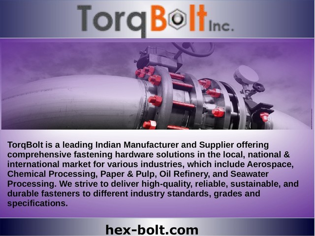 Complete Fastening Solutions in Domestic, National & International Market with prime core dedication to serve Technical Sectors like Boiler & heat Exchanger Manufacturers, Petroleum Refinning Units, Metal Processing & Mining Industry, Nuclear & Thermal Power Plants, Oil & Gas Extraction Rigs, Industrial Chemical Processing Plants, Food Processing Units, Electric & Heavy Engineering sectors, Marine Exploration Industries, Aerospace & Aeronautical Sector & more. Beginning with serving Indian Industries, TorqBolt has acheived Much of Global Presence & Recognition for Quality Product & Service dedicated to roots of our Organization.