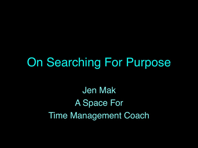 On Searching For Purpose Jen Mak A Space For Time