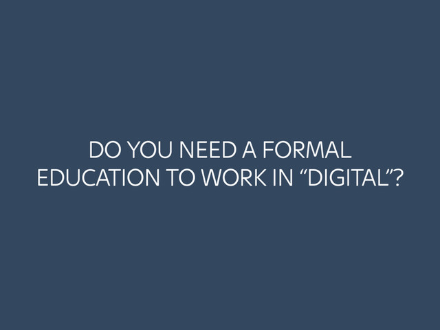 it once was* • If you haven’t already, get a mentor or 6 • Make some mistakes & learn from it • Working in the industry is the most up to date curriculum • Make stuff (happen) *This is regarding digital/creative sectors. Some professions will always require degrees etc