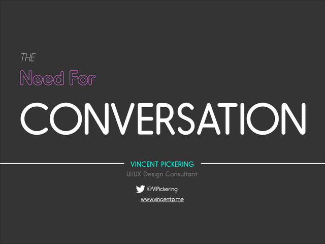 @VIPickering www.vincentp.me VINCENT PICKERING UI/UX Design Consultant Need For THE