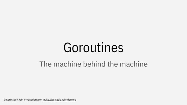 (Lock) • A channel is just a file descriptor for an anonymous file ◦ ch <- ob write()-s the pointer of the object to the FD ◦ ob <- ch read()-s the pointer from the FD • OS Signals - SIGKILL, SIGINT… ◦ Uses signalfd() when available ◦ Uses various other techniques when not available • Sleep ◦ Sleeping the thread is not possible ◦ Uses timerfd_create() when available ◦ poll() can tell Linux to sleep the thread for some time • WaitGroups, Mutex ◦ Using eventfd()