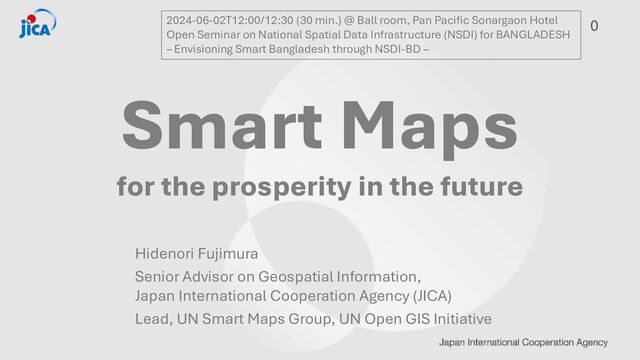 Cooperation Agency (JICA) Lead, UN Smart Maps Group, UN Open GIS Initiative Smart Maps for the prosperity in the future 2024-06-02T12:00/12:30 (30 min.) @ Ball room, Pan Pacific Sonargaon Hotel Open Seminar on National Spatial Data Infrastructure (NSDI) for BANGLADESH – Envisioning Smart Bangladesh through NSDI-BD –