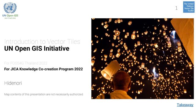the UN through FOSS4G on web maps. • From OSGeo Japan chapter. • Lead, United Nations Vector Tile Toolkit (UNVT) • Lead, UN Open GIS Initiative Domain Working Group 7 (DWG 7)on Smart Maps • Working for the Geospatial Information Authority of Japan (GSI). • I am talking about Vector Tiles - an industry standard to distribute vector geospatial data on the web. • Presentation goal: to let us think together to keep web maps open - so that everyone can have access to geospatial information for smarter decision. 4