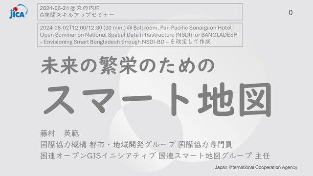 スマート地図 2024-06-24 @ 丸の内JP G空間スキルアップセミナー 2024-06-02T12:00/12:30 (30 min.) @ Ball room, Pan Pacific Sonargaon Hotel Open Seminar on National Spatial Data Infrastructure (NSDI) for BANGLADESH – Envisioning Smart Bangladesh through NSDI-BD – を改定して作成