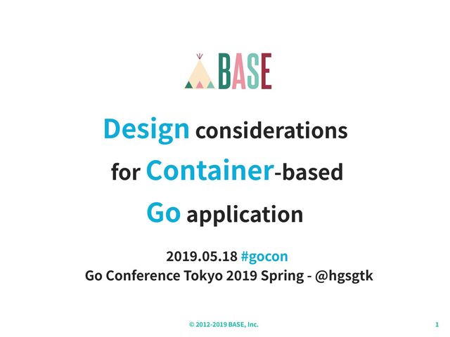 © - BASE, Inc. まとめ • コンテナアプリケーションの設計ベストプラクティス から設計⽅針を⾒出した • 設計⽅針から実践したGoでの実装事例を紹介した