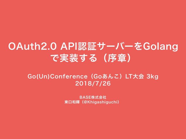OAuth2.0でのAPI認証サーバーをGolangで実装する(序章) at Go(Un)Conference(Goあんこ)LT大会 3kg