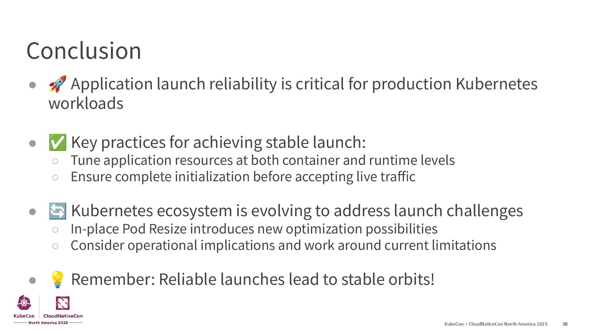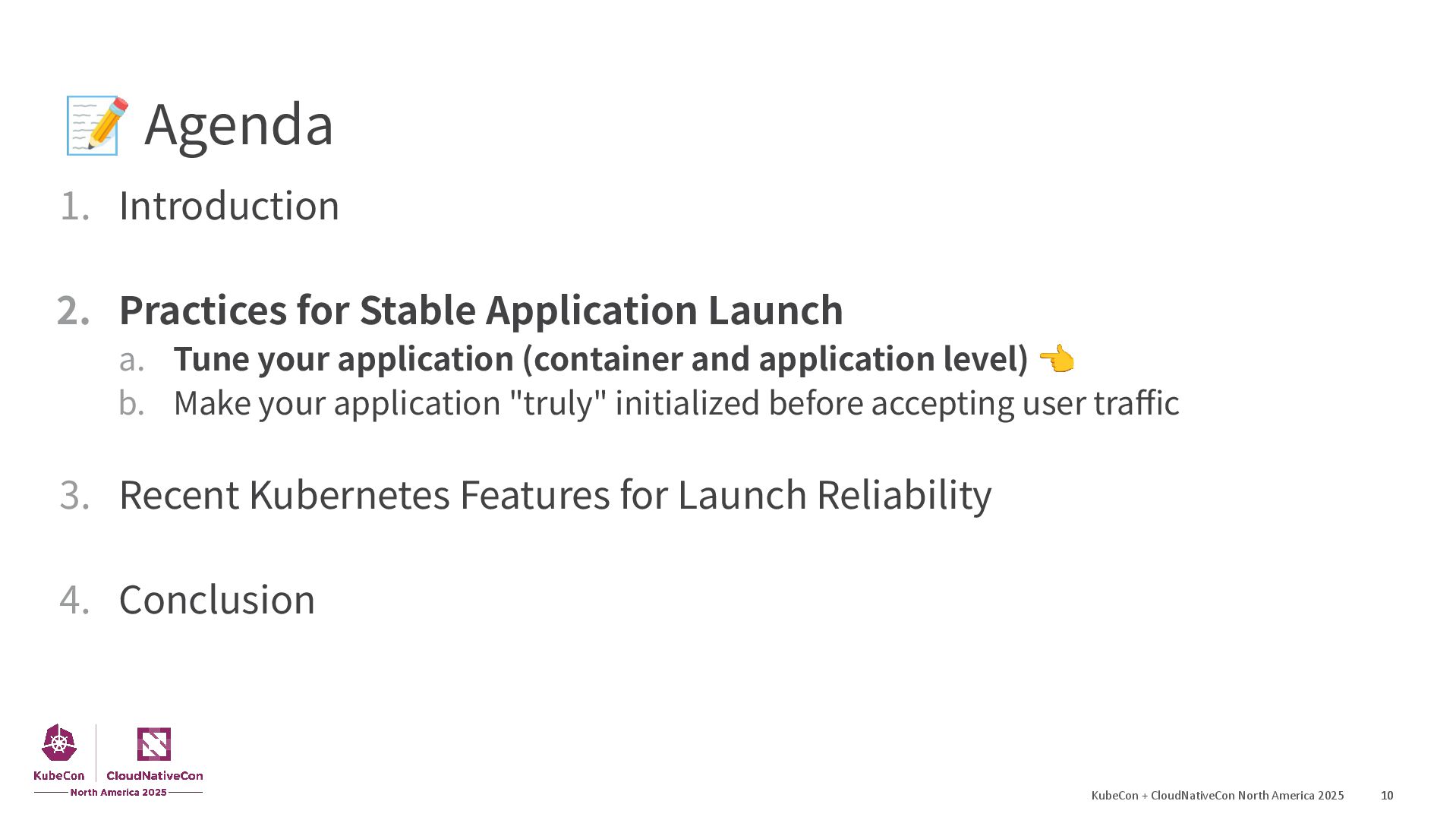 This session will cover best practices for maximizing the launch reliability of applications on Kubernetes, including application tuning, appropriate resource allocation, health check settings, and techniques for automated warm-up. Additionally, he will explore the practical use of Kubernetes' recent feature, in-place pod resize, particularly for CPU bursting at startup. By the end of the session, you will gain actionable insights to enhance application stability and achieve flexible scaling.