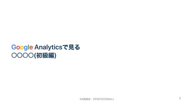 Google Analyticsで⾒る ◦◦◦◦(初級編) GA勉強会 - 2019/12/23(Mon.) 1