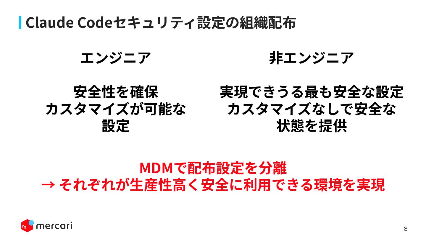 メルカリのClaude Codeセキュリティ設定の組織配布戦略 - Claude Code Meetup Japan #4