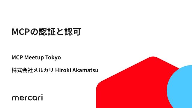 1 MCPの認証と認可 MCP Meetup Tokyo 株式会社メルカリ Hiroki Akamatsu