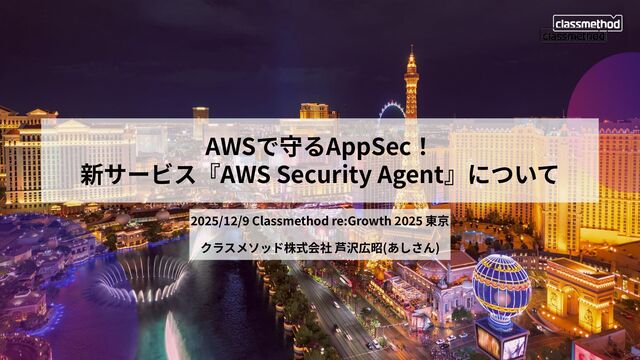 2025/12/9 Classmethod re:Growth 2025 東京 クラスメソッド株式会社 芦沢広昭(あしさん) AWSで守るAppSec! 新サービス『AWS Security