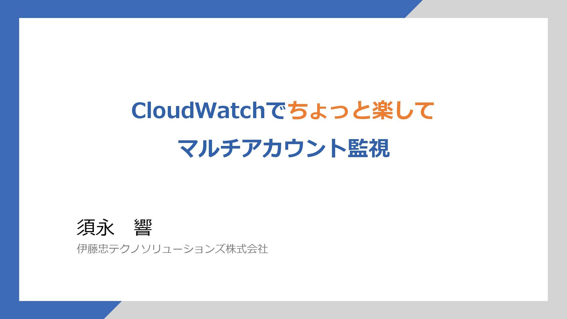 CloudWatchでちょっと楽して マルチアカウント監視 須永 響 伊藤忠テクノソリューションズ株式会社