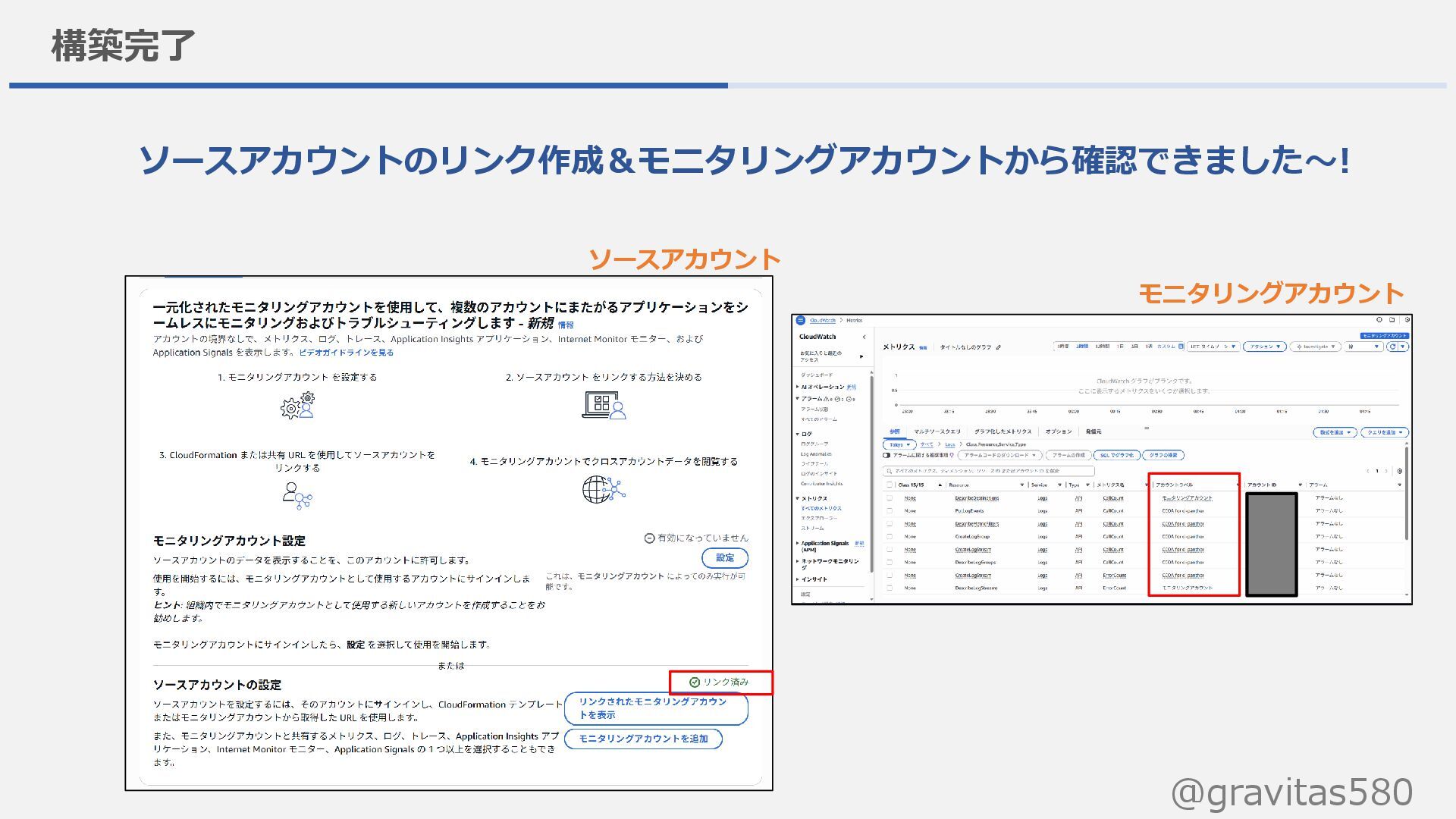 @gravitas580 クロスアカウントオブザーバビリティの構築方法を 簡単にご紹介します