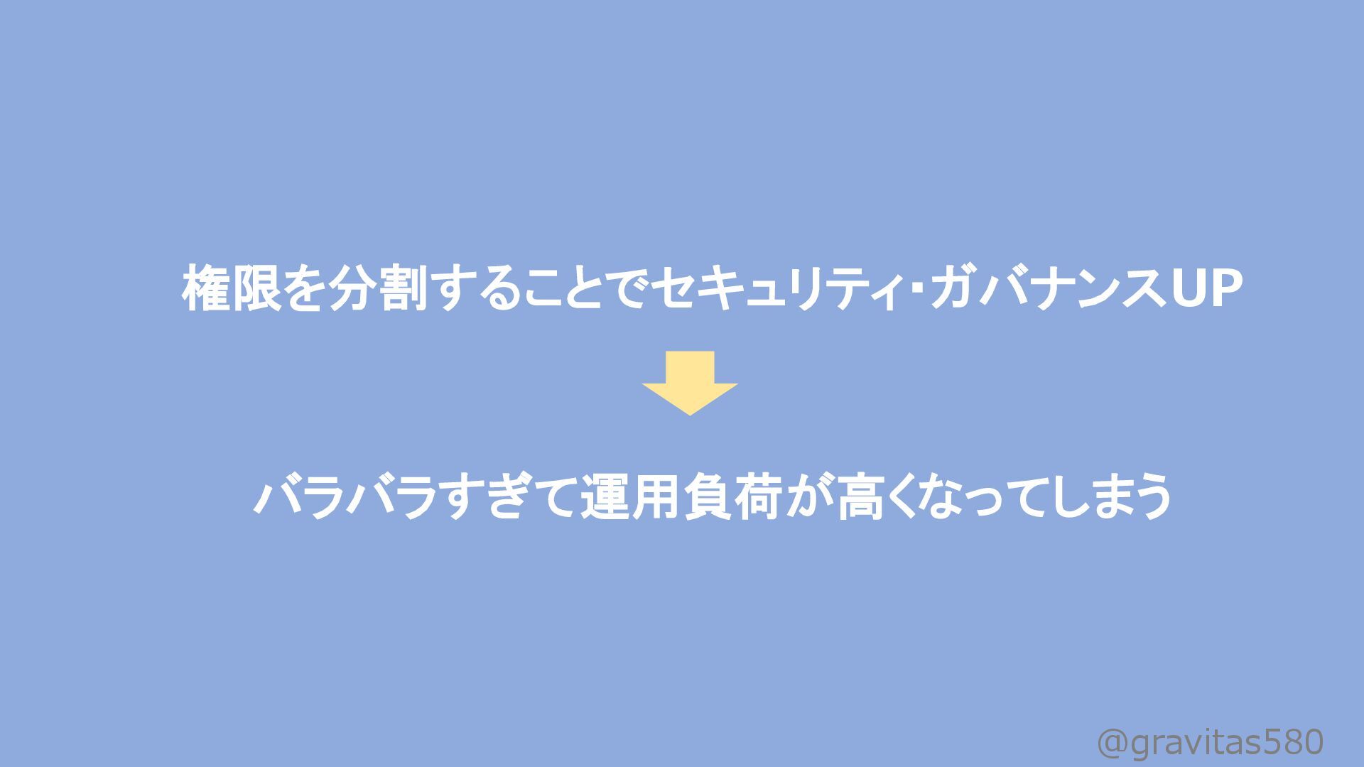 @gravitas580 権限を分割することでセキュリティ・ガバナンスUP バラバラすぎて運用負荷が高くなってしまう