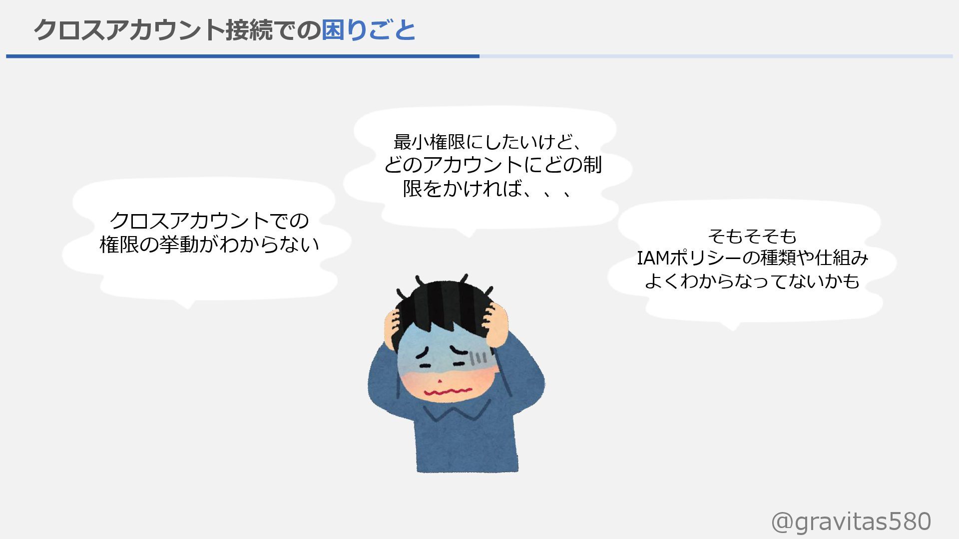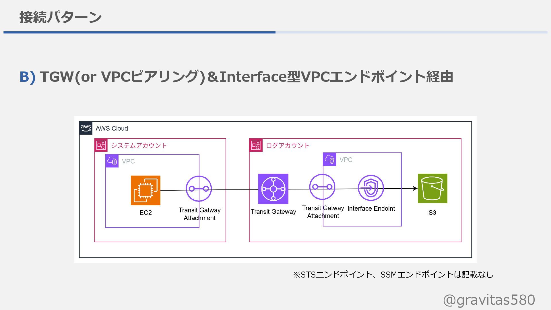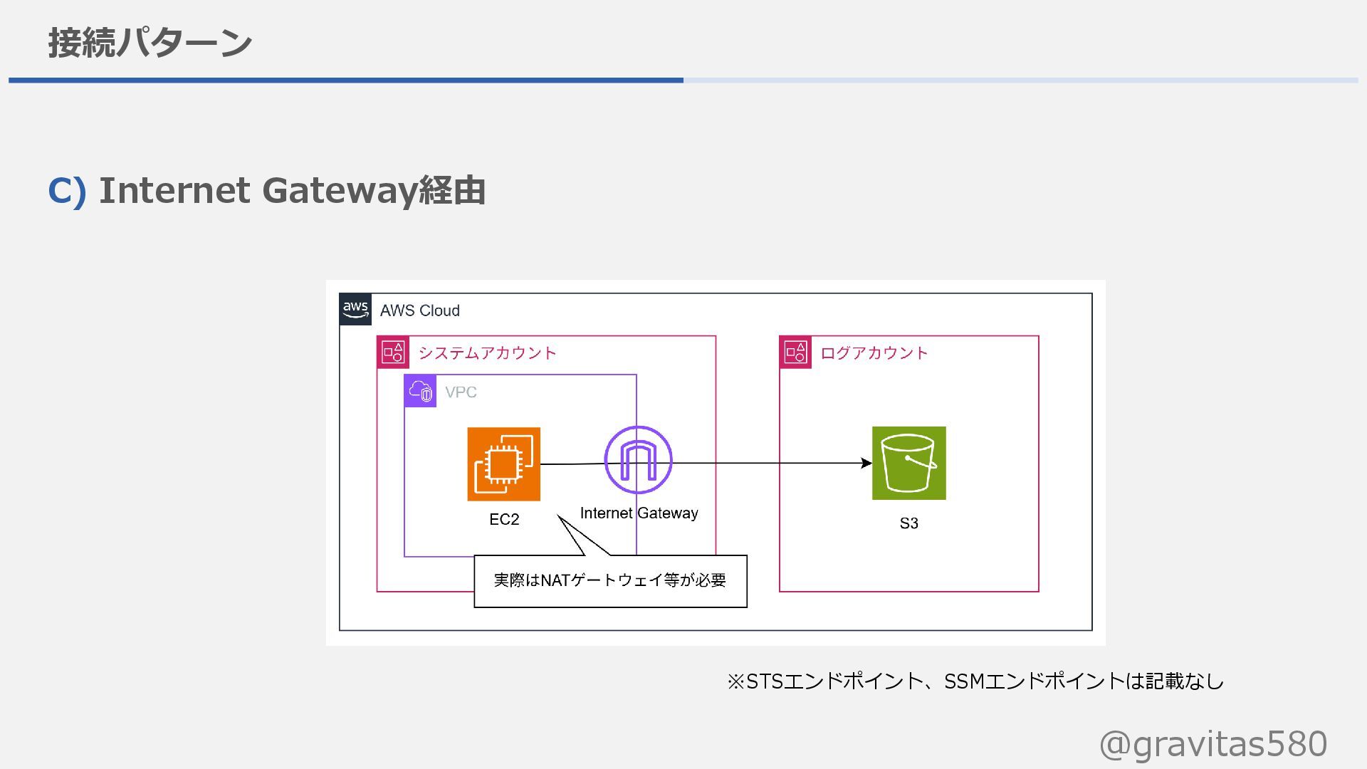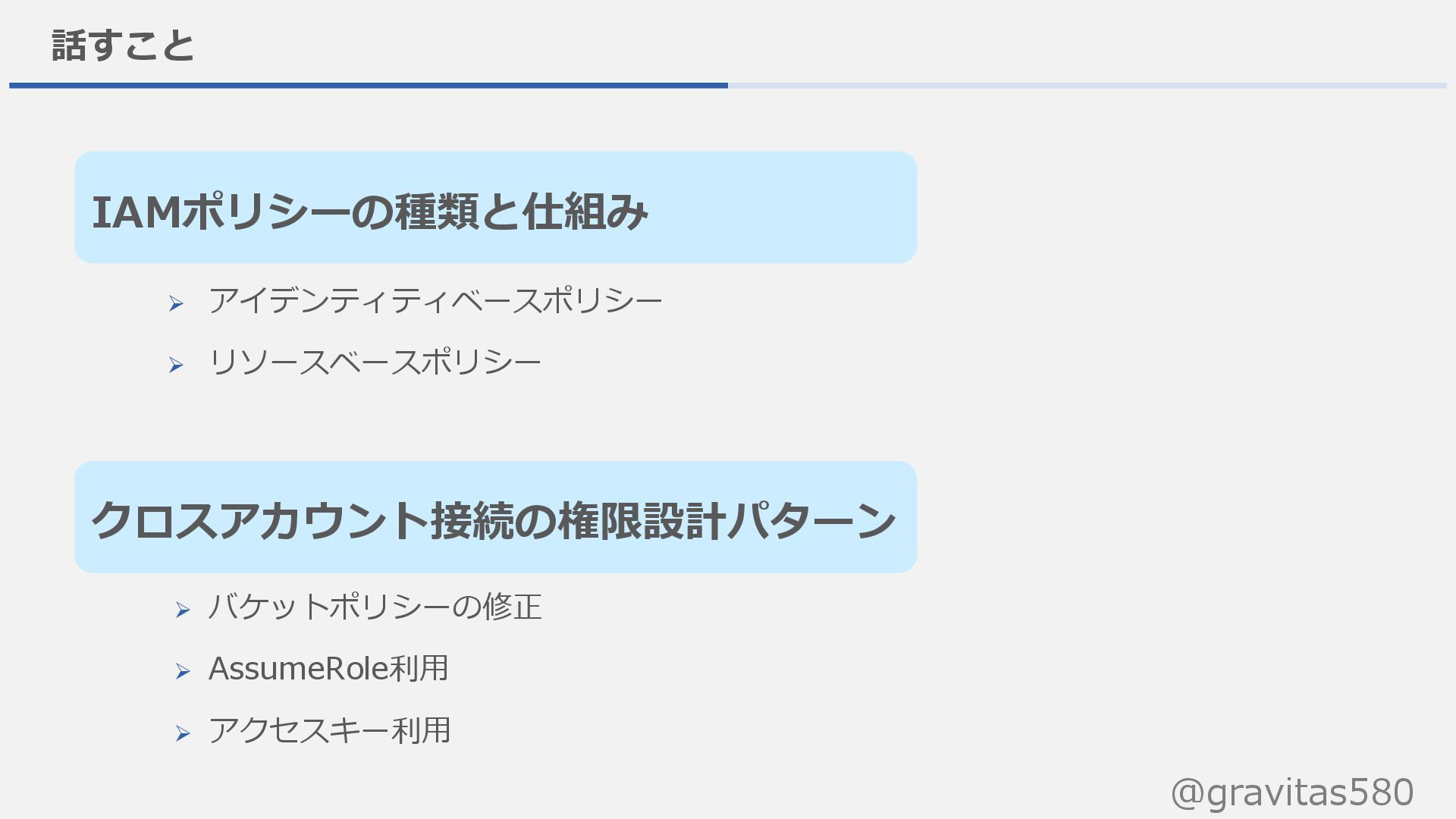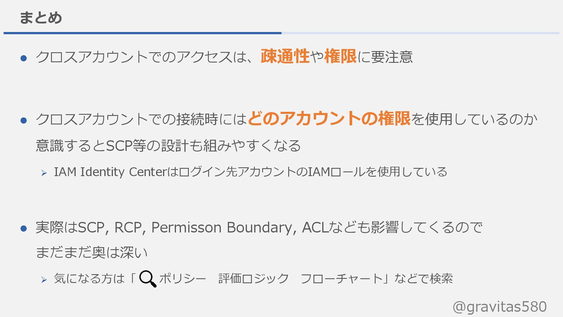 "arn:aws:iam::999999999999:role/S3AccessRole" } ログアカウントIAMロール アイデンティティベースポリシー { "Effect": "Allow", "Action": [ "s3:PutObject", "s3:GetObject" ], "Resource": "arn:aws:s3:::my-bucket/*" } ログアカウントIAMロール 信頼ポリシー { "Effect": "Allow", "Principal": { "AWS": "arn:aws:iam::123456789012:role/EC2Role" }, "Action": "sts:AssumeRole" }