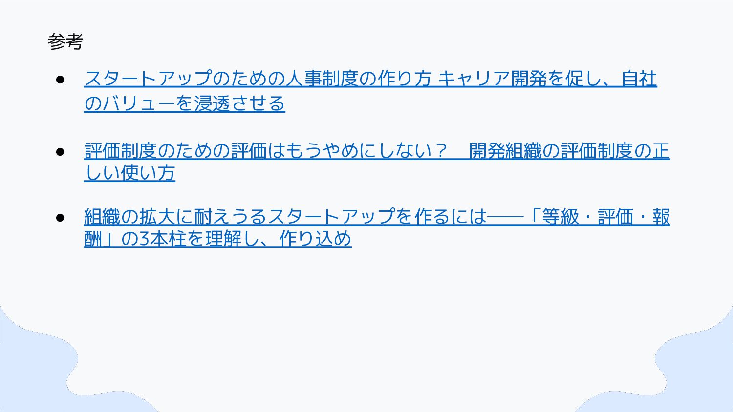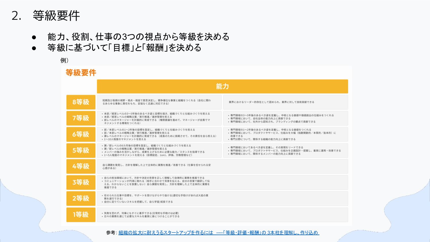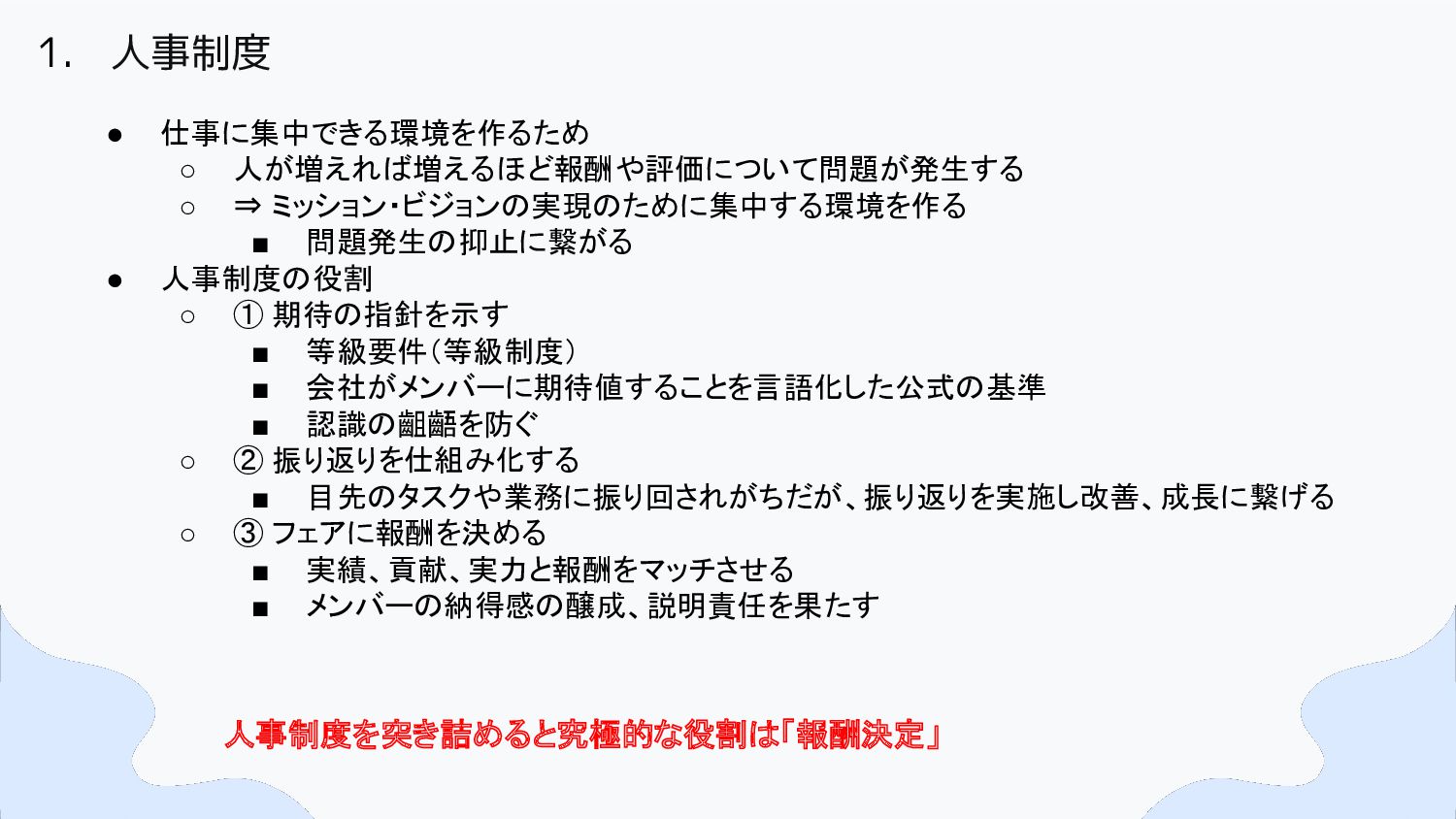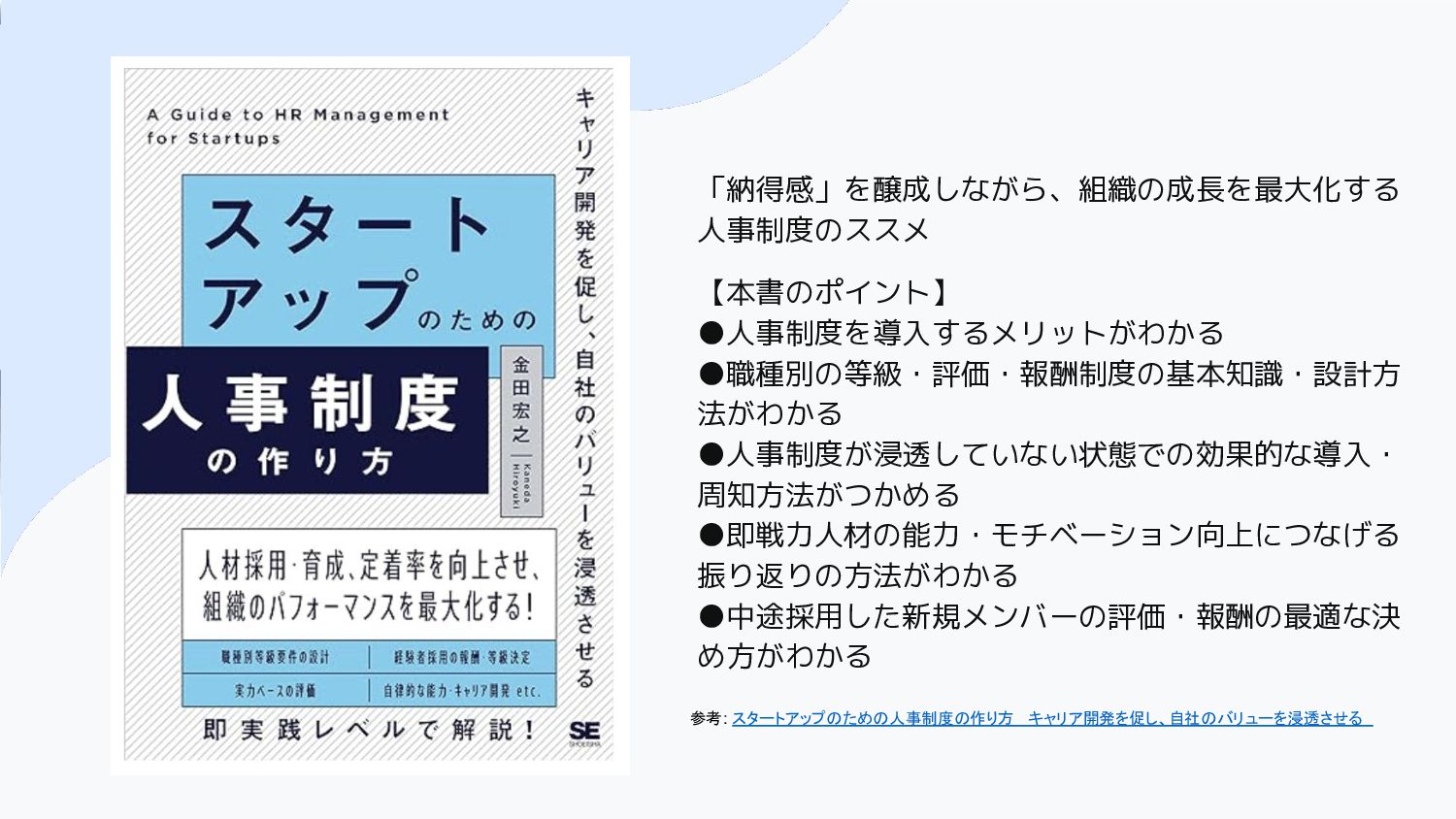金田 宏之 氏の著書「スタートアップのための人事制度の作り方」に記載されている内容と自身の考えを交え、整理した資料です。