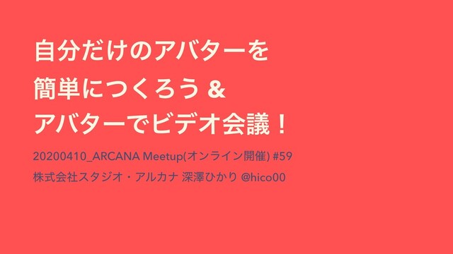 ͚ࣗͩͷΞόλʔΛ ؆୯ʹͭ͘Ζ͏ & ΞόλʔͰϏσΦձٞʂ 20200410_ARCANA Meetup(ΦϯϥΠϯ։࠵) #59 גࣜձࣾελδΦɾΞϧΧφ ਂᖒͻ͔Γ @hico00