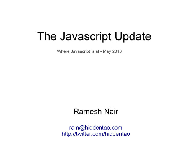 • Next version will fix a lot of things – But will still take time to become available across all browsers and devices • What can we do today? – CoffeeScript, ClojureScript, TypeScript, Opal – Dart – many others... http://altjs.org/
