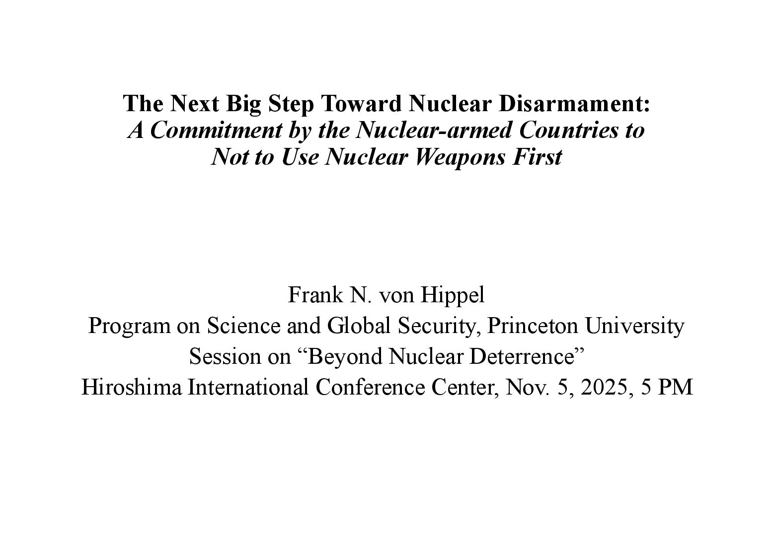 the Nuclear-armed Countries to Not to Use Nuclear Weapons First Frank N. von Hippel Program on Science and Global Security, Princeton University Session on “Beyond Nuclear Deterrence” Hiroshima International Conference Center, Nov. 5, 2025, 5 PM