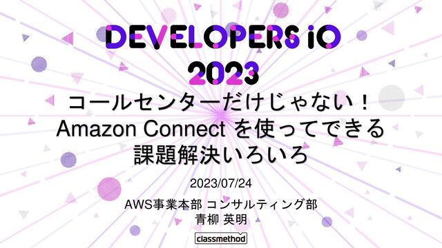 コールセンターだけじゃない! Amazon Connect を使ってできる 課題解決いろいろ 2023/07/24 AWS事業本部 コンサルティング部 青柳 英明