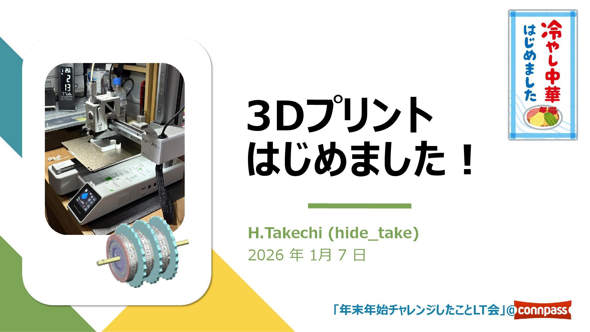 3Dプリント はじめました! H.Takechi (hide_take) 2026 年 1月 7 日 「年末年始チャレンジしたことLT会」@