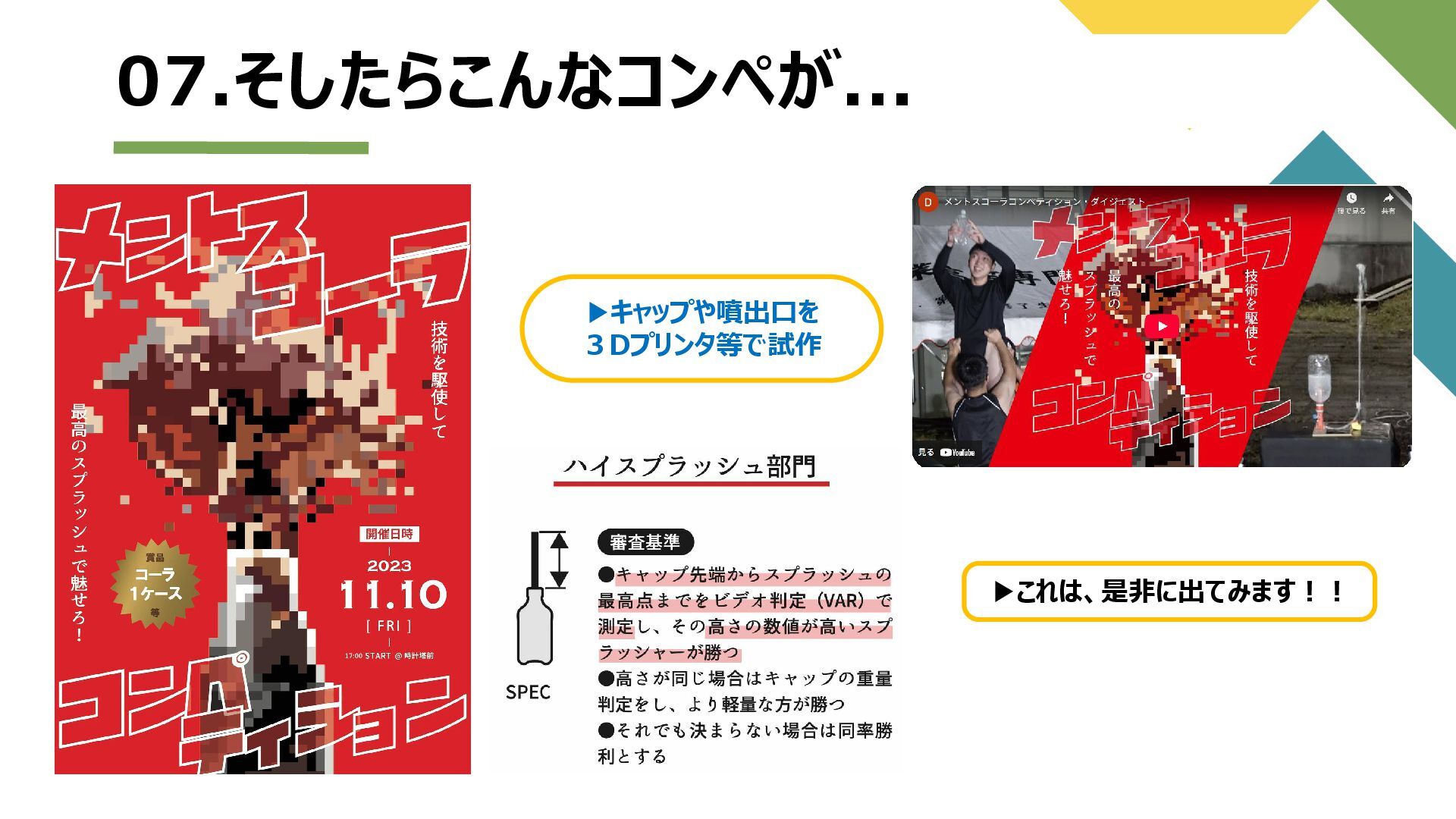 8 07.そしたらこんなコンペが... ▶これは、是非に出てみます!! ▶キャップや噴出口を 3Dプリンタ等で試作