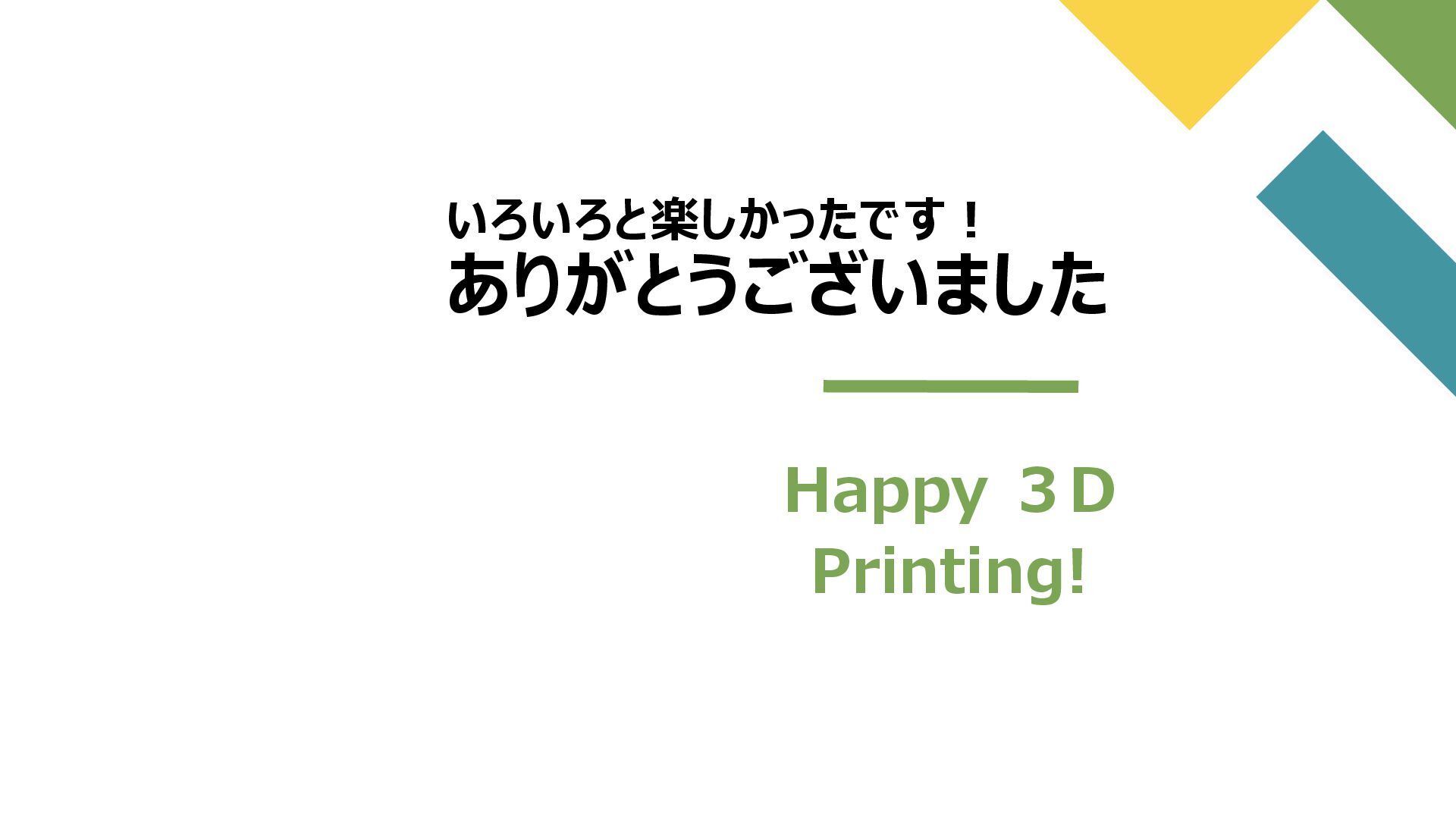 いろいろと楽しかったです! ありがとうございました Happy 3D Printing!