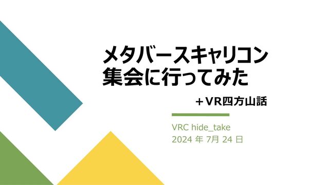 メタバースキャリコン 集会に行ってみた VRC hide_take 2024 年 7月 24 日 +VR四方山話