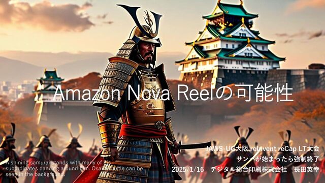 Amazon Nova Reelの可能性 JAWS-UG大阪 reInvent reCap LT大会 サンバが始まったら強制終了 2025/1/16 デジタル総合印刷株式会社