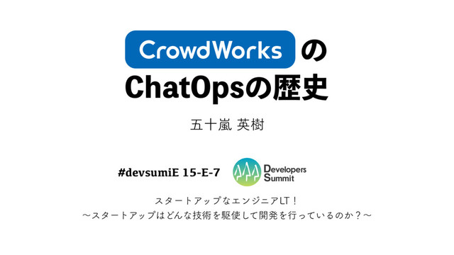 Develpers Summit 2018 【15-E-7】 スタートアップなエンジニアLT!〜スタートアップはどんな技術を駆使して開発を行っているのか?〜 http://event.shoeisha.jp/devsumi/20180215/session/1649/