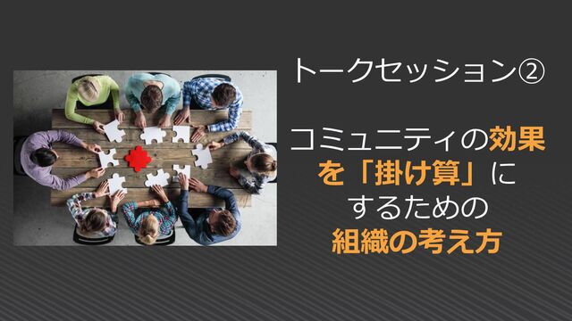2023/05/11開催 CMC_Meetup Tokyo Vol.26 でのトークセッション②の進行スライドです。 コミュニティの掛け算を進めるための組織再編の考え方について、カオナビさんにお話しいただいています。