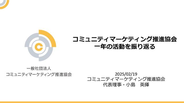コミュニティマーケティング推進協会 一年の活動を振り返る 2025/02/19 コミュニティマーケティング推進協会 代表理事・小島 英揮