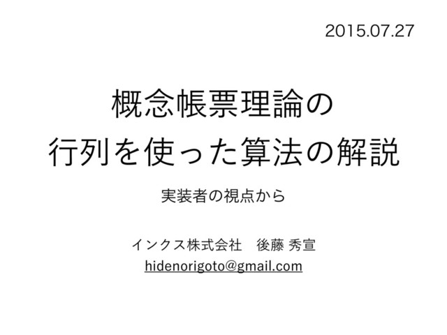 ֓೦ாථཧͷ ߦྻΛͬͨࢉ๏ͷղઆ ΠϯΫεגࣜձࣾɹޙ౻लએ IJEFOPSJHPUP!HNBJMDPN ࣮ऀͷࢹ͔Β