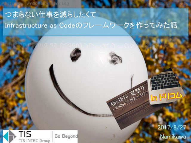 Roles 2-0001_Base 2-0101_Cygwin 2-0401_JP1Agents 2-0501_OracleClient 2-0701_LogstorageAgent 2-0901_DeepSecurityAgent 2-0001_Base 2-0001-002_Memory 2-0001-011_User 2-0001-012_UserGroup 2-0001-013_Uac 2-0001-024_Timezone 2-0001-025_RecoverOs 2-0001-051_Directory 2-0001-071_Hostname 2-0001-072_Interface 2-0001-073_Routing 2-0001-074_Firewall ・・・ コードライブラリ コーディング?実績のある汎用化された Codeがいつでもそこにある