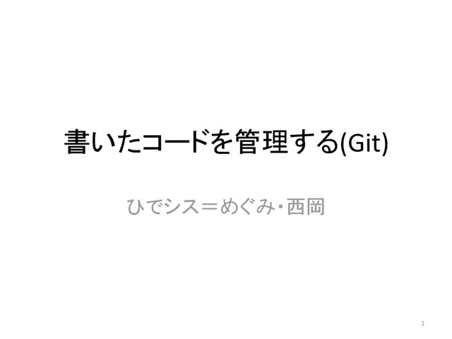 書いたコードを管理する(Git) ひでシス=めぐみ・西岡 1