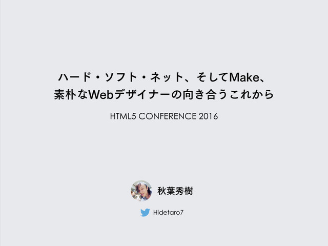 ϋʔυɾιϑτɾωοτɺͦͯ͠.BLFɺ ૉͳ8FCσβΠφʔͷ͖߹͏͜Ε͔Β HTML5 CONFERENCE 2016 Hidetaro7 ळ༿लथ