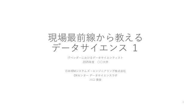 大学からの要請があったため、大学名と正式な講義名は伏せており、「現場最前線から教えるデータサイエンス」として紹介します。