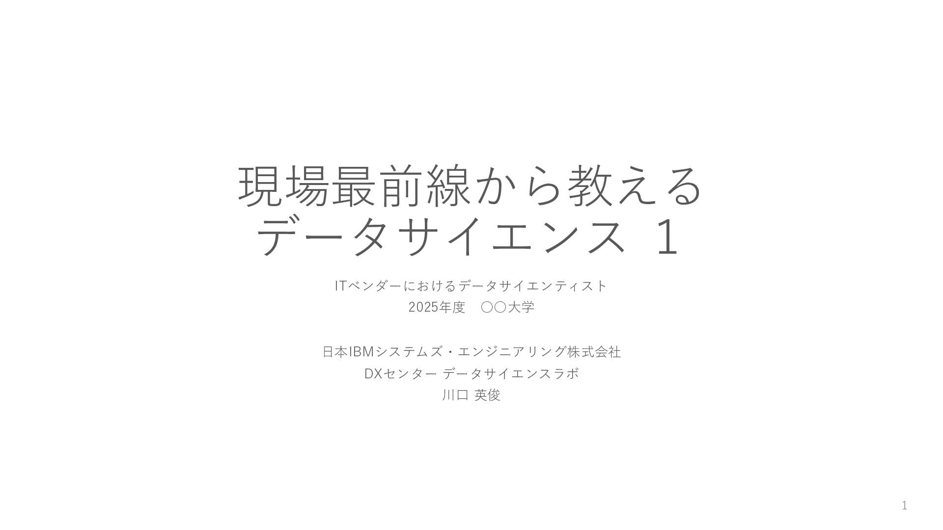 現場最前線から教えるデータサイエンス1 -ITベンダーにおけるデータサイエンティスト-