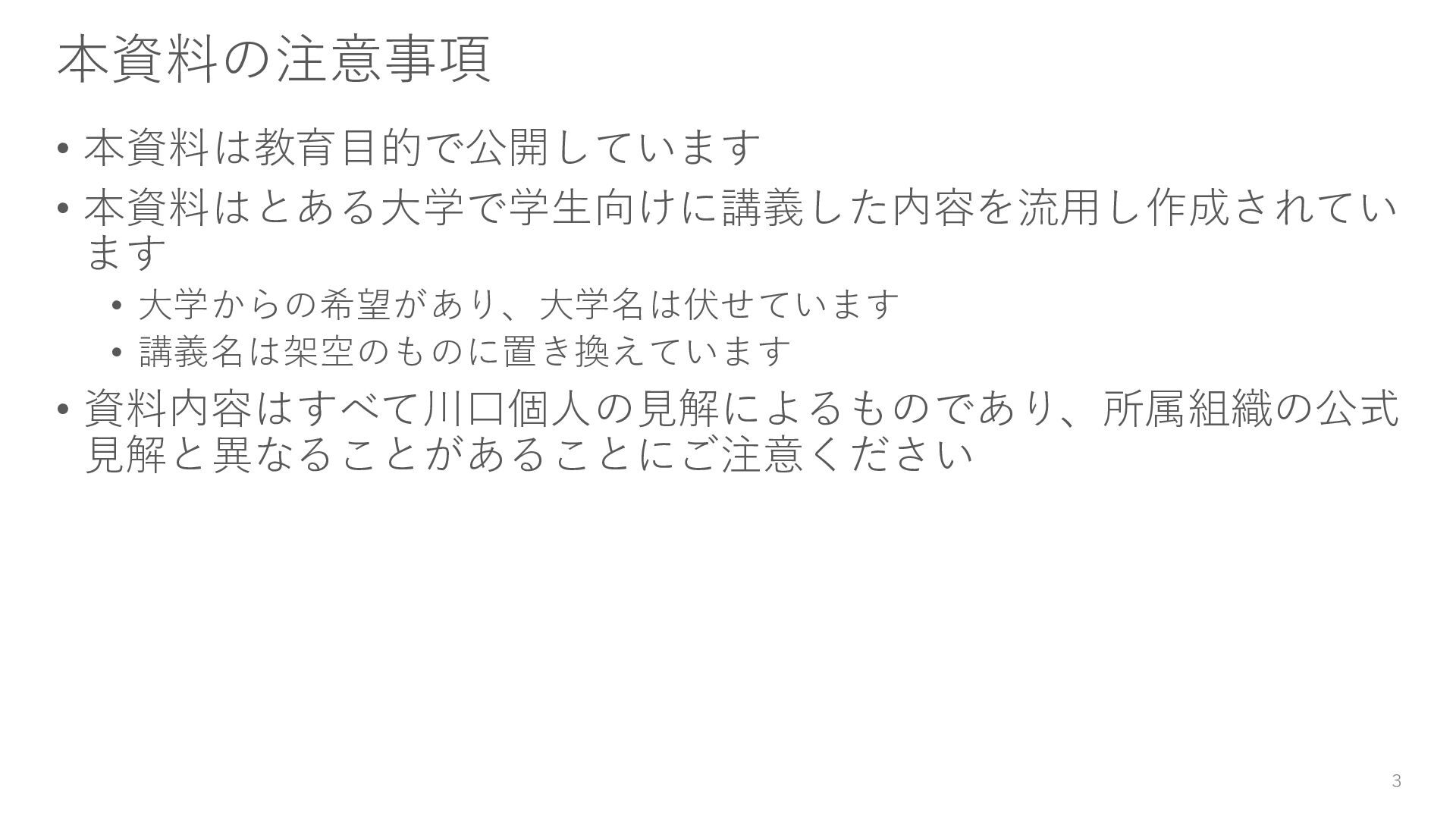 いわゆる「モデルをどう作るか」だけではなく、実務で実際に困りやすい周辺スキルも含めて講義化した、というのがこの資料の特徴です。