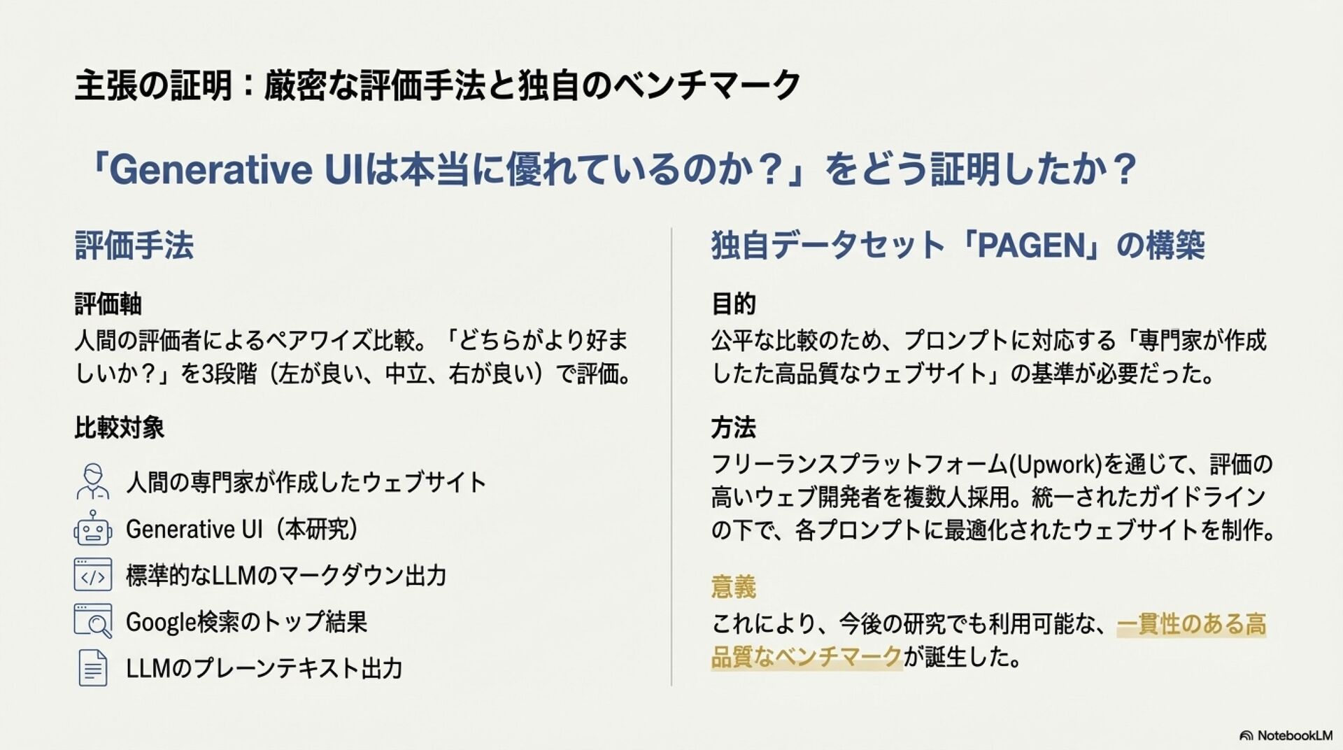 の論文を、NotebookLMに質問しつつ、キーポイントをまとめてもらったスライド。