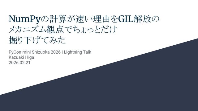NumPyの計算が速い理由をGIL解放の メカニズム観点でちょっとだけ 掘り下げてみた PyCon mini Shizuoka 2026 | Lightning Talk