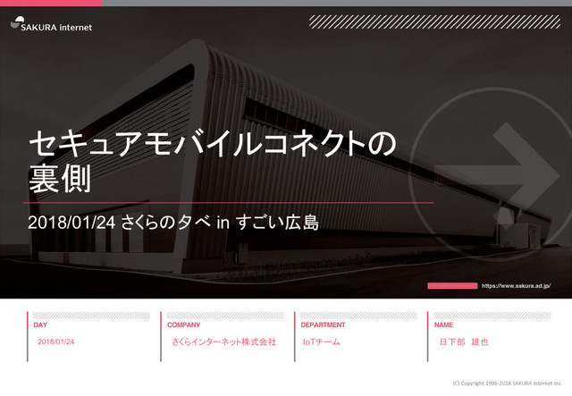 2018/01/24 さくらの夕べ in すごい広島で発表した「セキュアモバイルコネクトの裏側」の資料です。 イベントページ https://sakura-chushikoku.doorkeeper.jp/events/68861