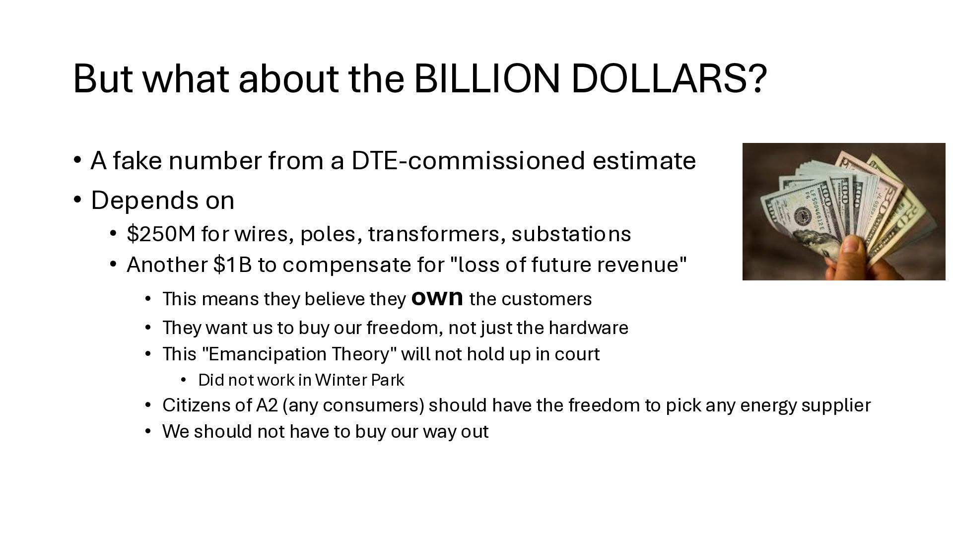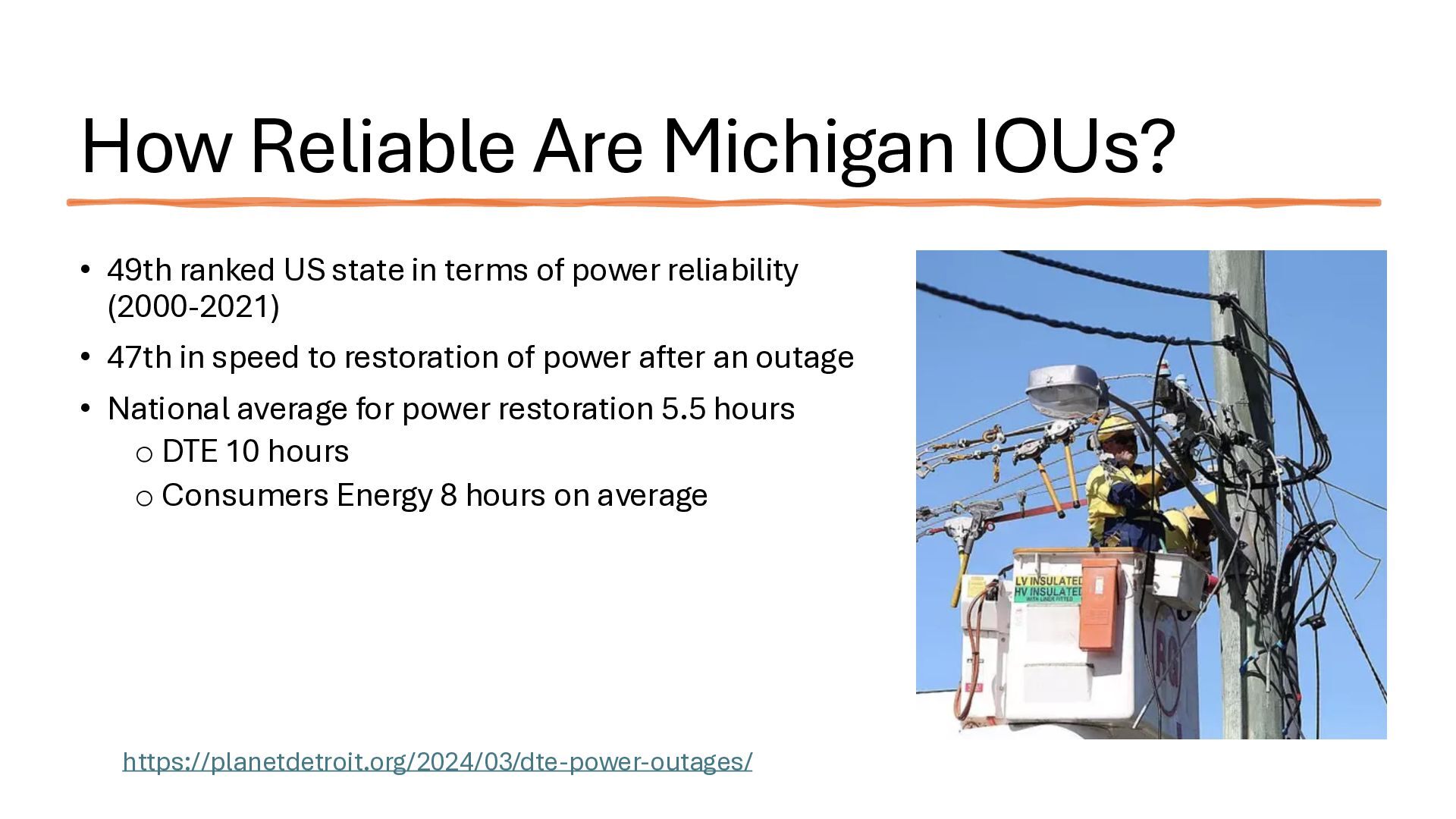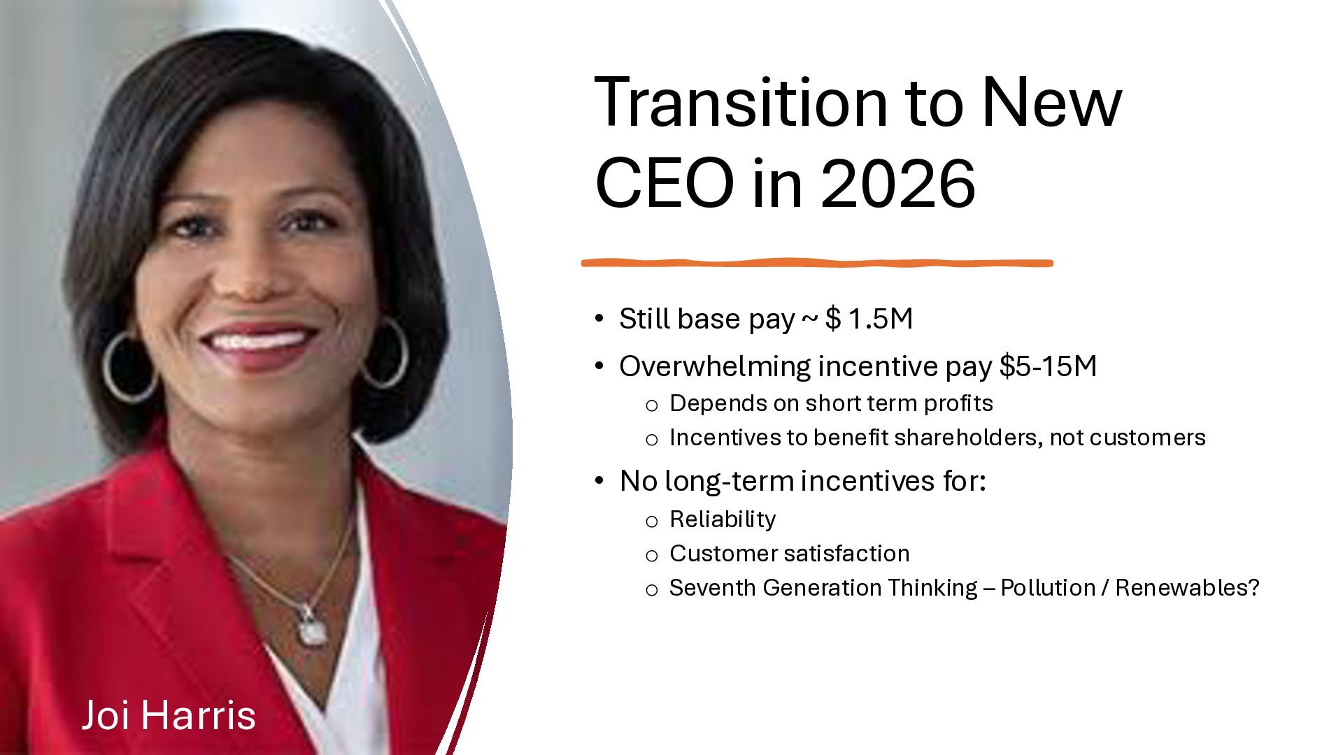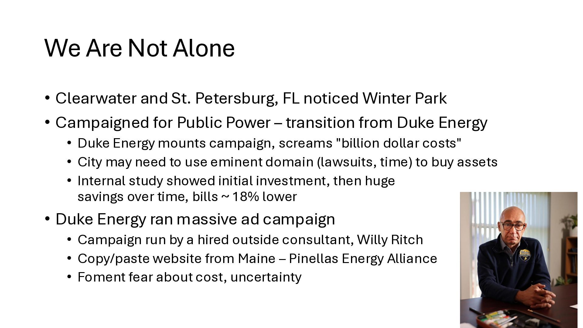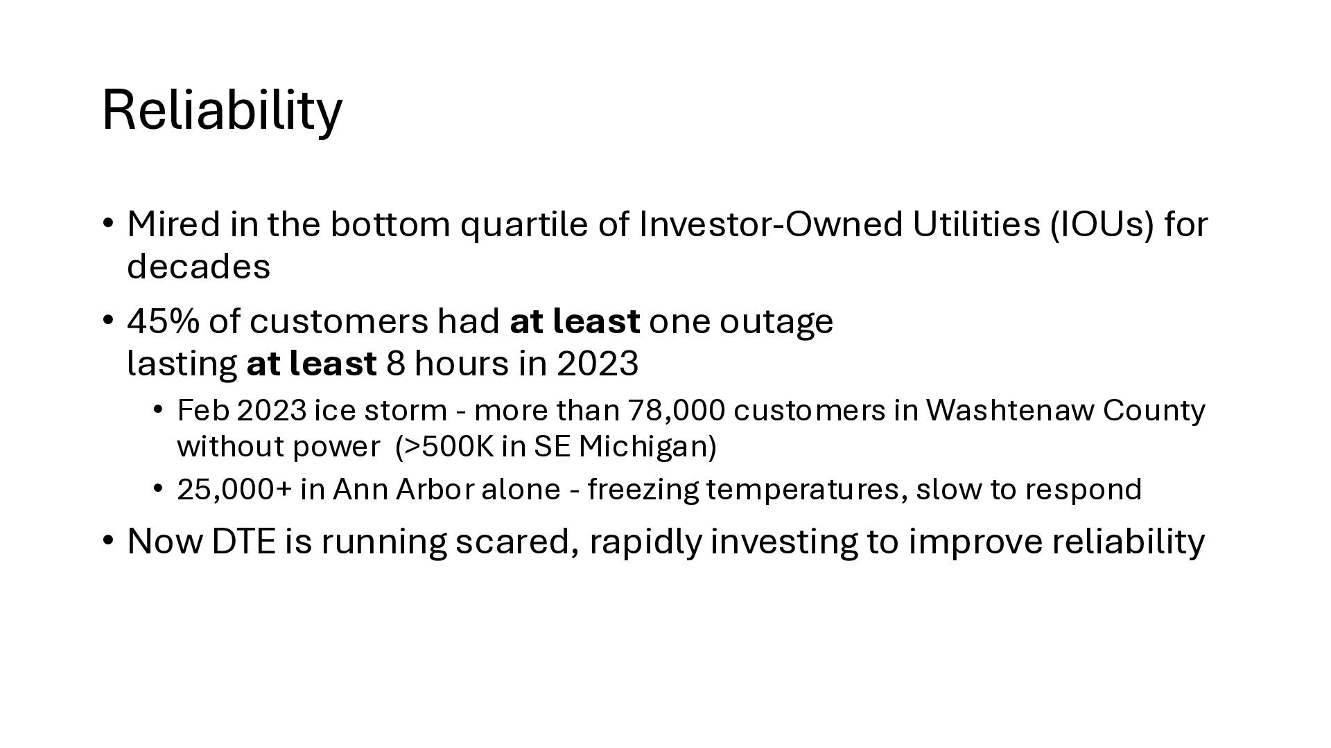 new startups • No regulation – too new - chaos • Needed big investment • No way (no grid) to buy wholesale power from somewhere else • Monopolies 'solved' the chaos • But now we are stuck with no competition in power generation • IOUs are not nimble. They build coal, nuclear, and gas plants and run them for 40 years to maximize profits. o Socialism and monopoly • There is an established nationwide electrical grid • Power producers put in power, utilities can contract to buy wholesale power • Old IOUs are incentivized to maximize shareholder profits • New producers are more nimble, can switch to solar, wind – whatever is cheaper o Solar, wind, battery costs falling fast • As prices change, public utilities can choose different providers (there is now competition among power producers because of the grid) o Capitalism and competition o Innovation 1910s 2020s