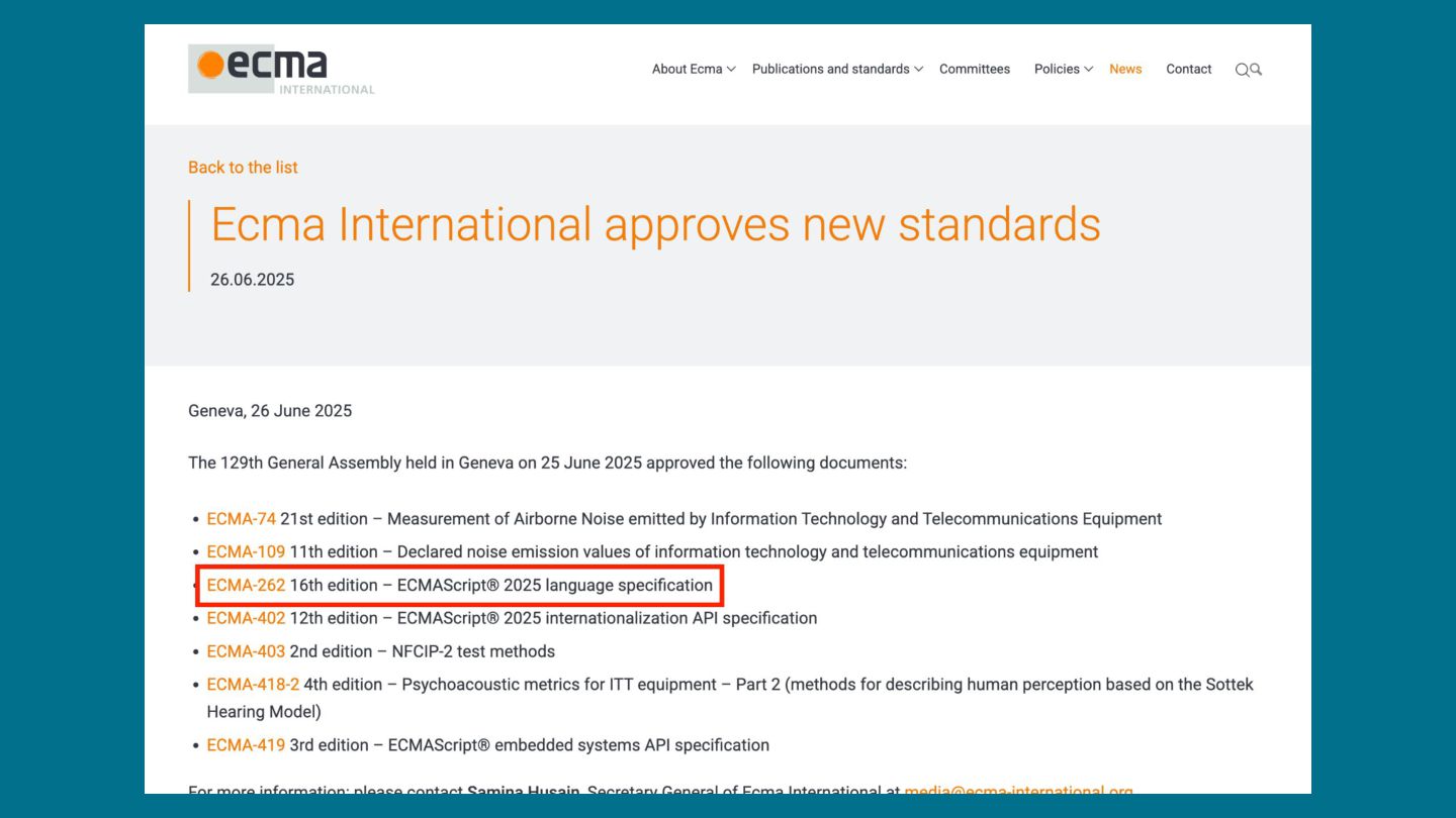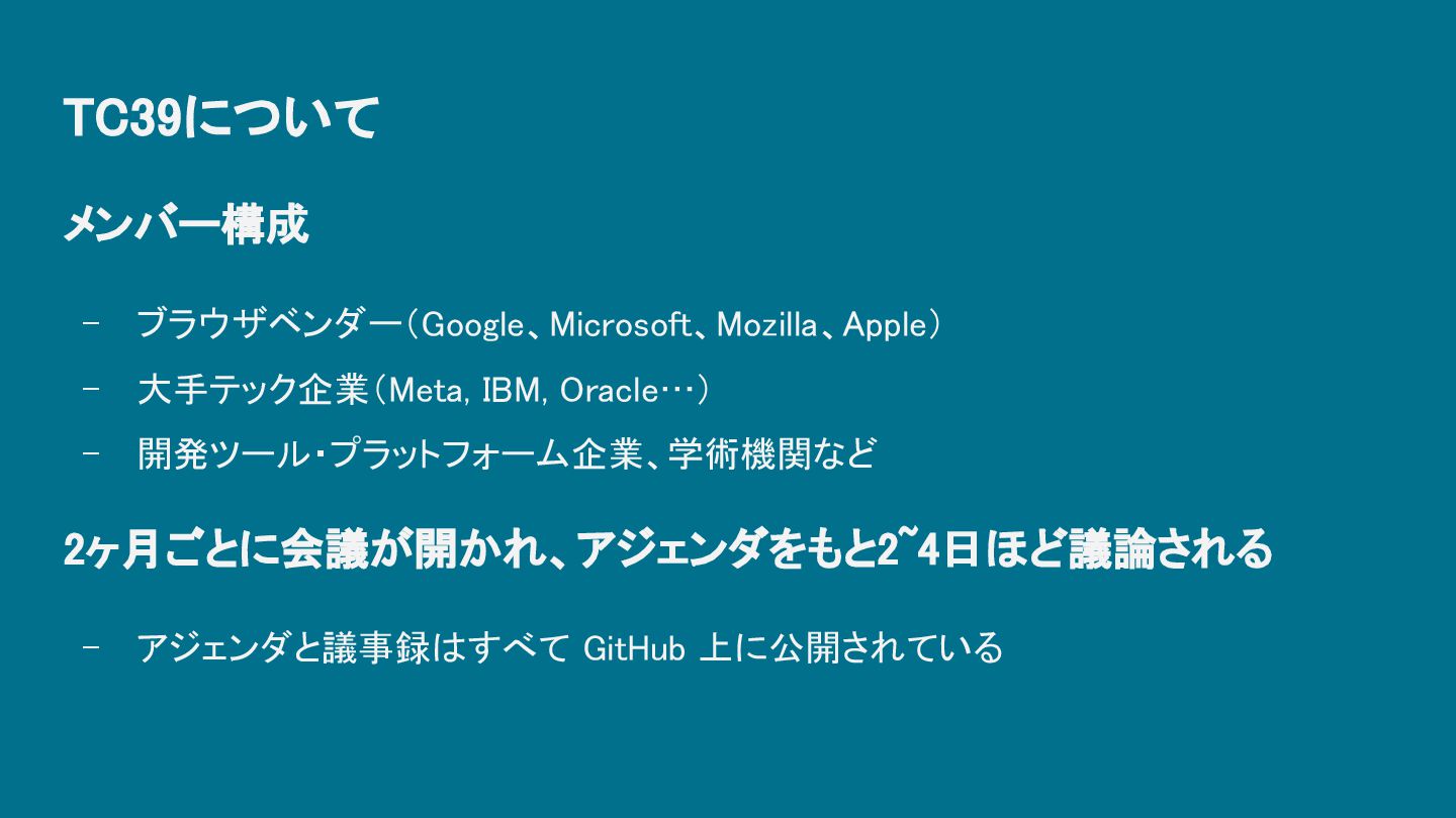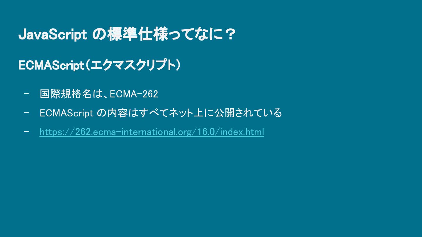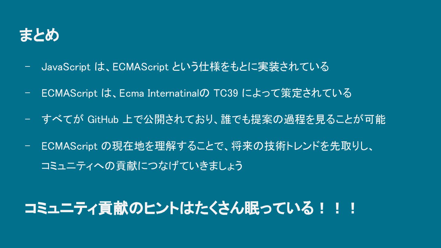- Stage 4:Finished → 正式採用、ECMAScript仕様への統合