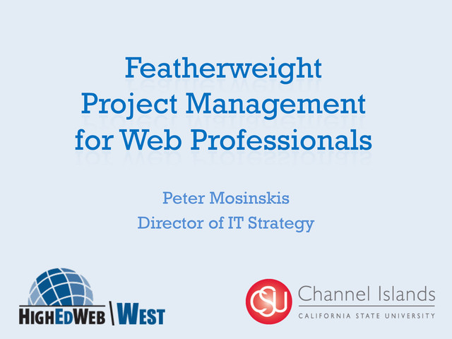Featherweight Project Management for Web Professionals Peter Mosinskis Director of