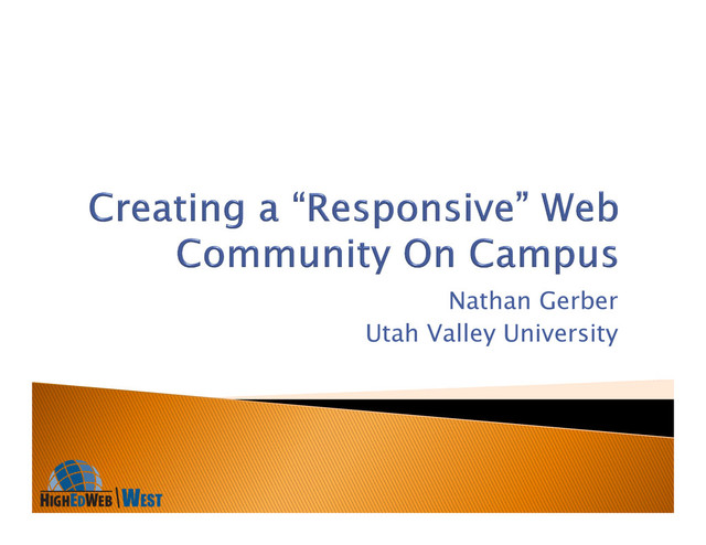 Web Development Services – 14 years Noel-Levitz Associate Consultant, Web Strategy and Interactive Marketing Services team UVU 320+ departments 410+ content contributors across campus ~30,000 pages