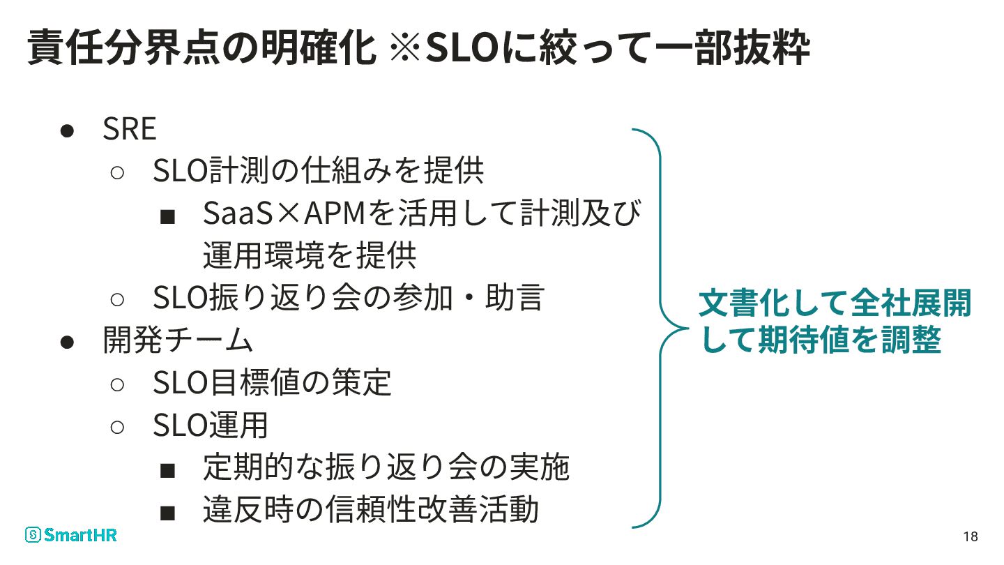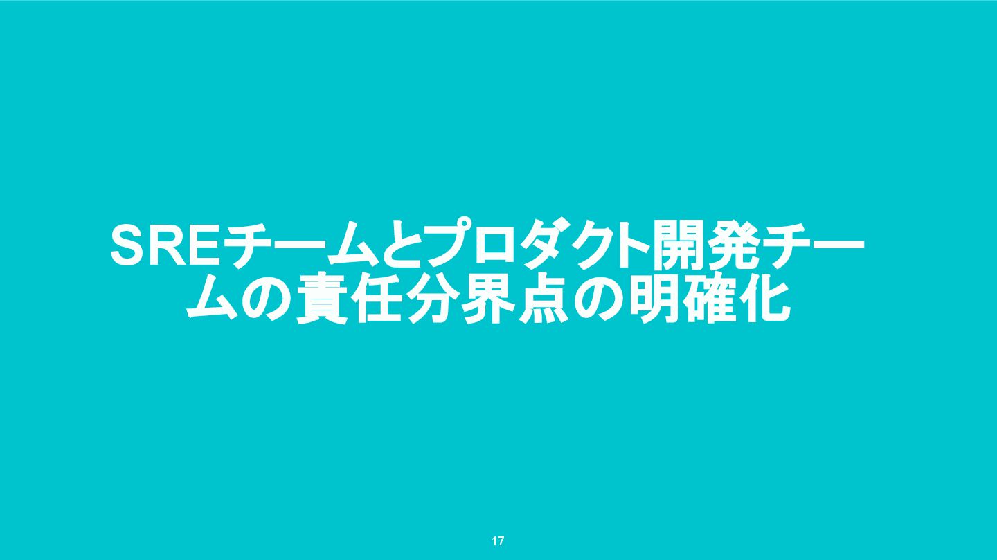 SREチームとプロダクト開発チー ムの責任分界点の明確化 17