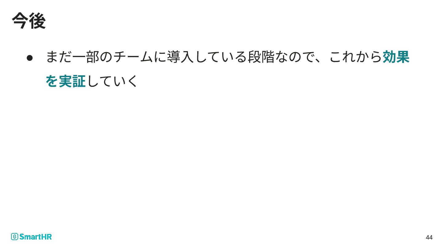 44 今後 • まだ⼀部のチームに導⼊している段階なので、これから効果 を実証していく